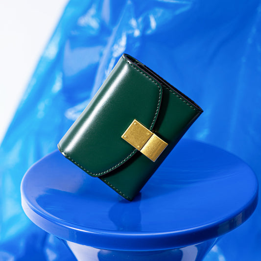 Women's Genuine Leather Bag Minimalist Small Tofu Shoulder Bag with Lock Closure and Versatile Crossbody Design