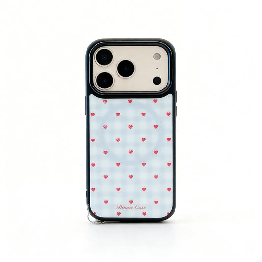 Gold and Blue Plaid Heart Magnetic Phone Case for iPhone