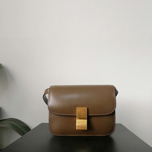 Women's Genuine Leather Bag Minimalist Small Tofu Shoulder Bag with Lock Closure and Versatile Crossbody Design