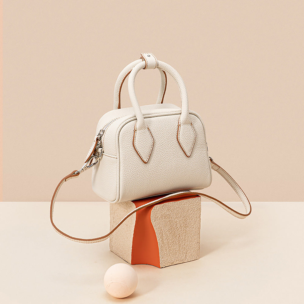 Boston Bag Top Grain Leather Shoulder and Crossbody Bag Unique Korean Design for Effortless Chic