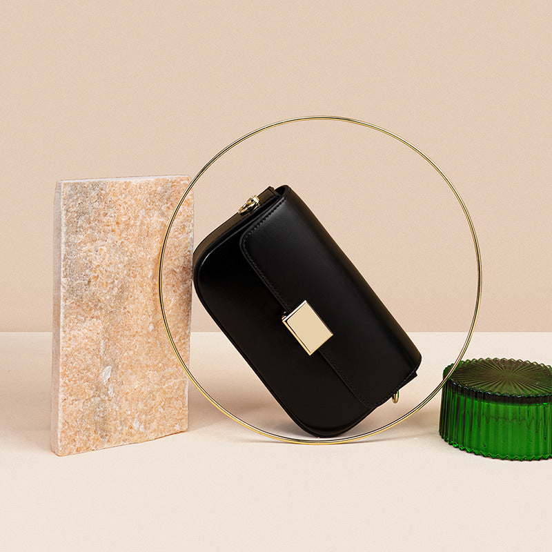 Chic Korean Inspired Unique Tofu Shaped Crossbody Bag Genuine Leather Women's Shoulder Bag with Versatile Chain Strap and Mini Square Design