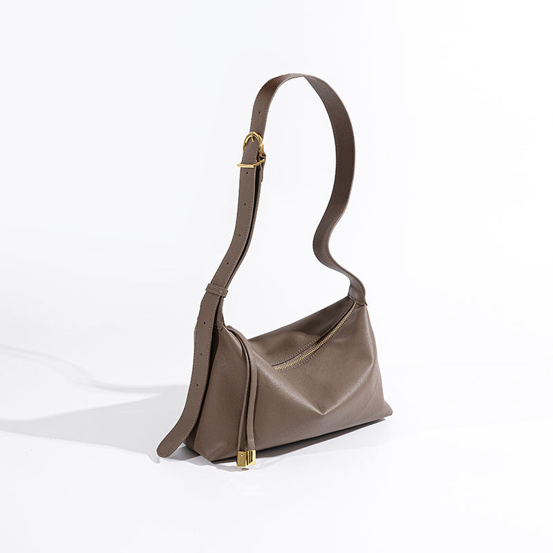 Elevate your fall wardrobe with our soft leather shoulder dumpling bag. as a crossbody or tote, this genuine leather accessory combines functionality with luxury. Ideal for commuting, its spacious design and aesthetics make it a must-have for any fashion-forward individual.