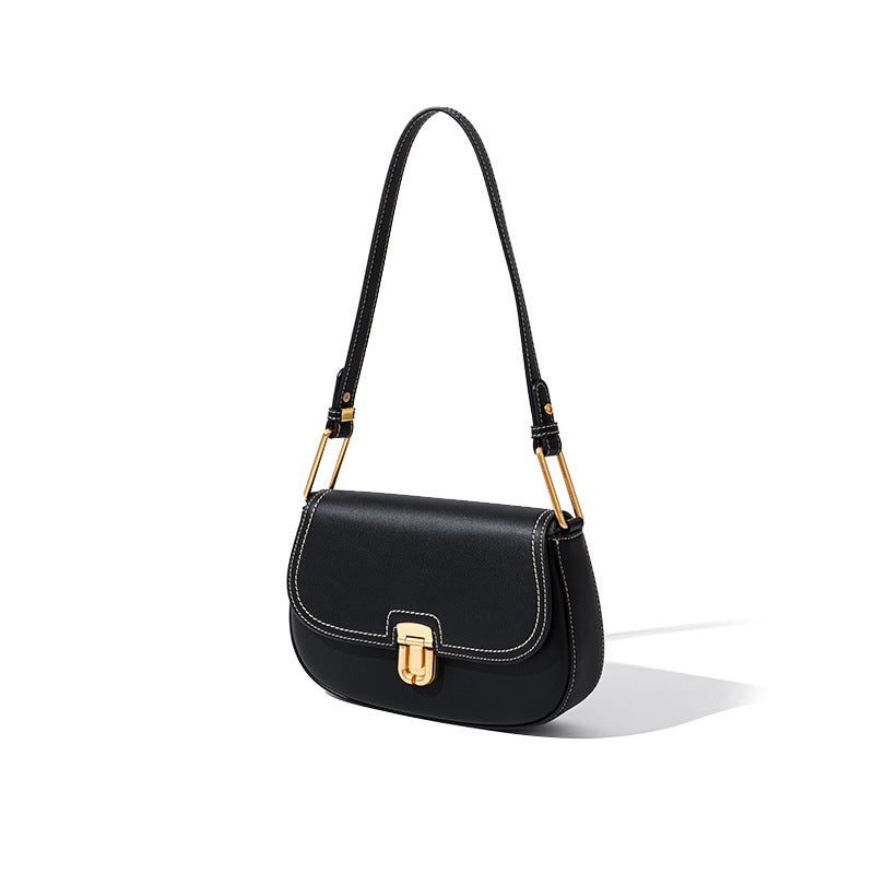 Designer Inspired Small Saddle Bag Genuine Leather Luxe Versatile Arm Hand Carry Dual Strap Shoulder Crossbody Style Korean Fashion Trend