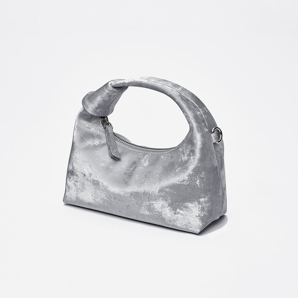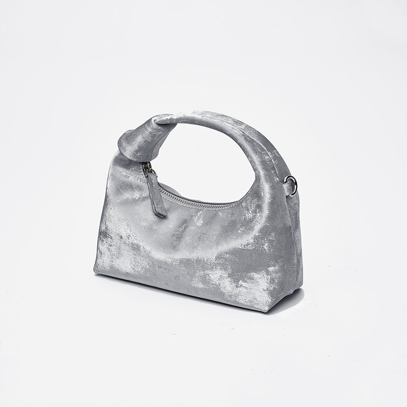 Elegant Silk Satin Dumpling Crossbody Bag Vintage Cloud Shape with Leather Design