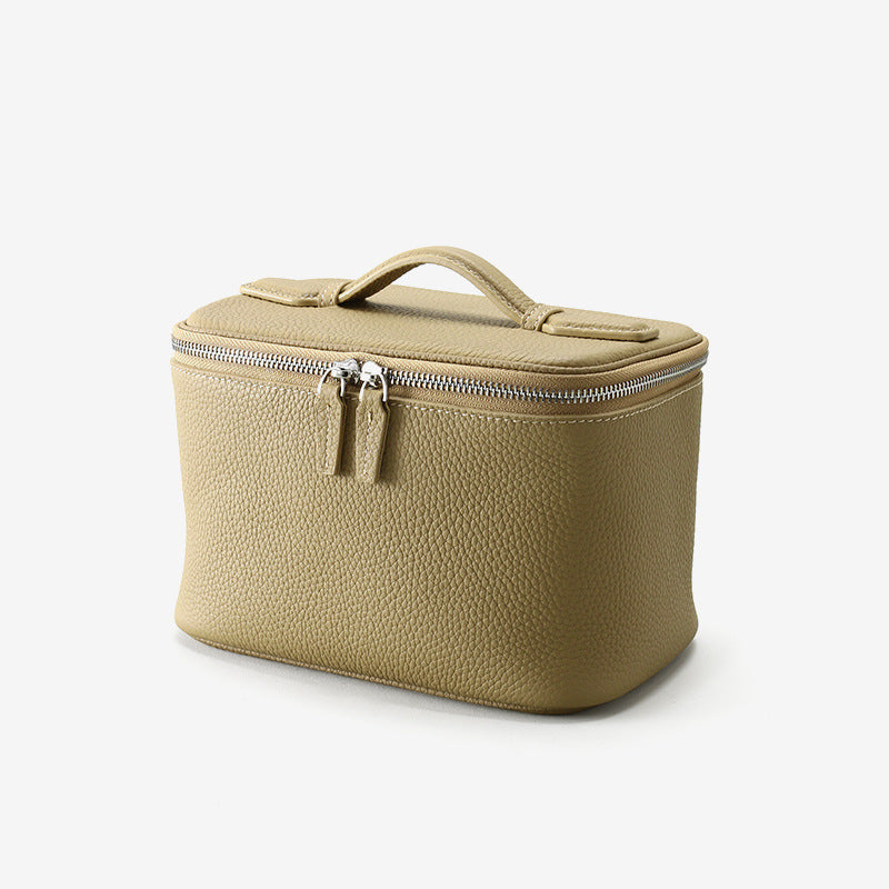 Full Grain Leather Makeup Bag Large Capacity Travel Toiletry Organizer Versatile Portable Genuine Leather Storage Pouch