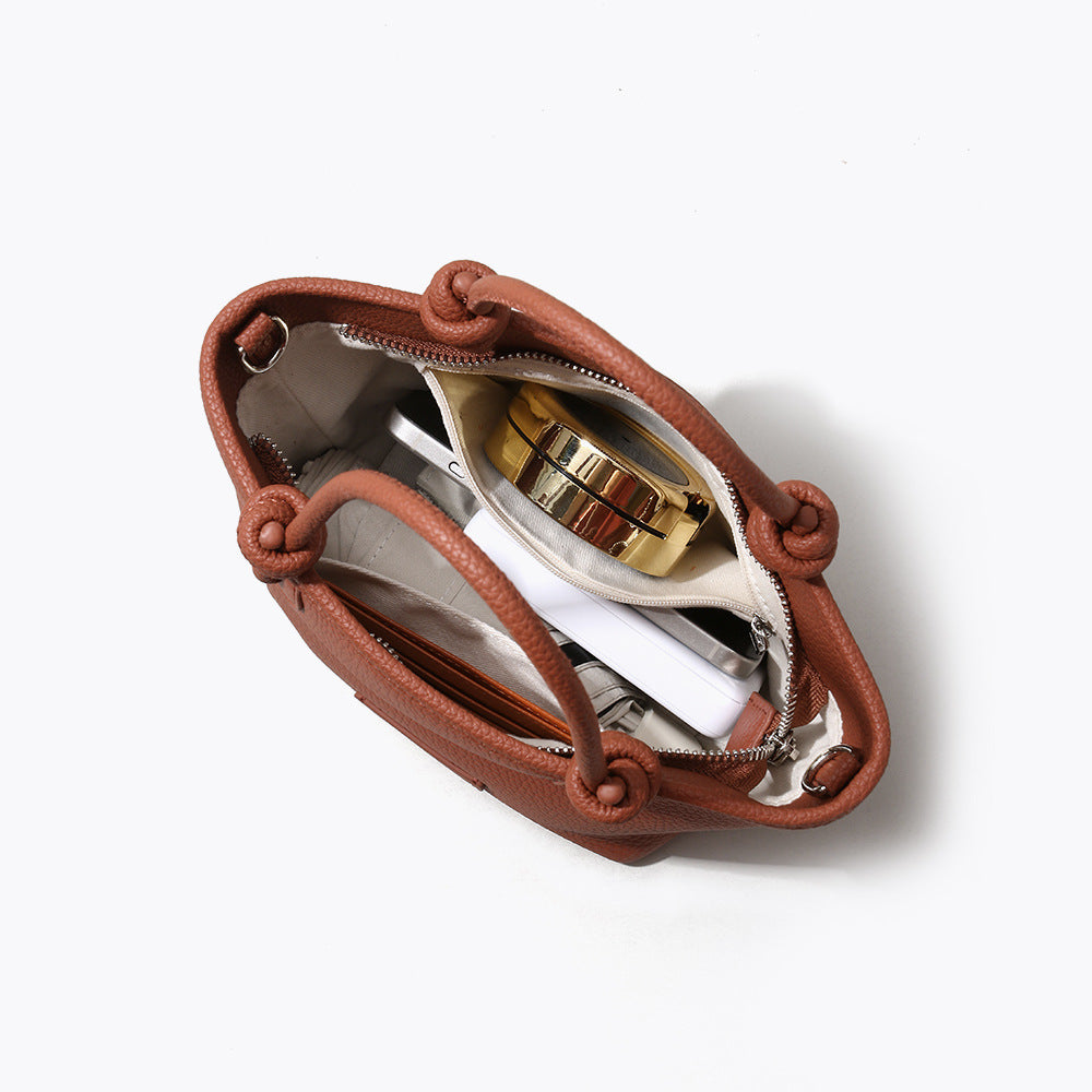 Genuine Leather Market Tote with Chic Knotted Design Versatile Handbag and Crossbody Bag for Everyday Elegance