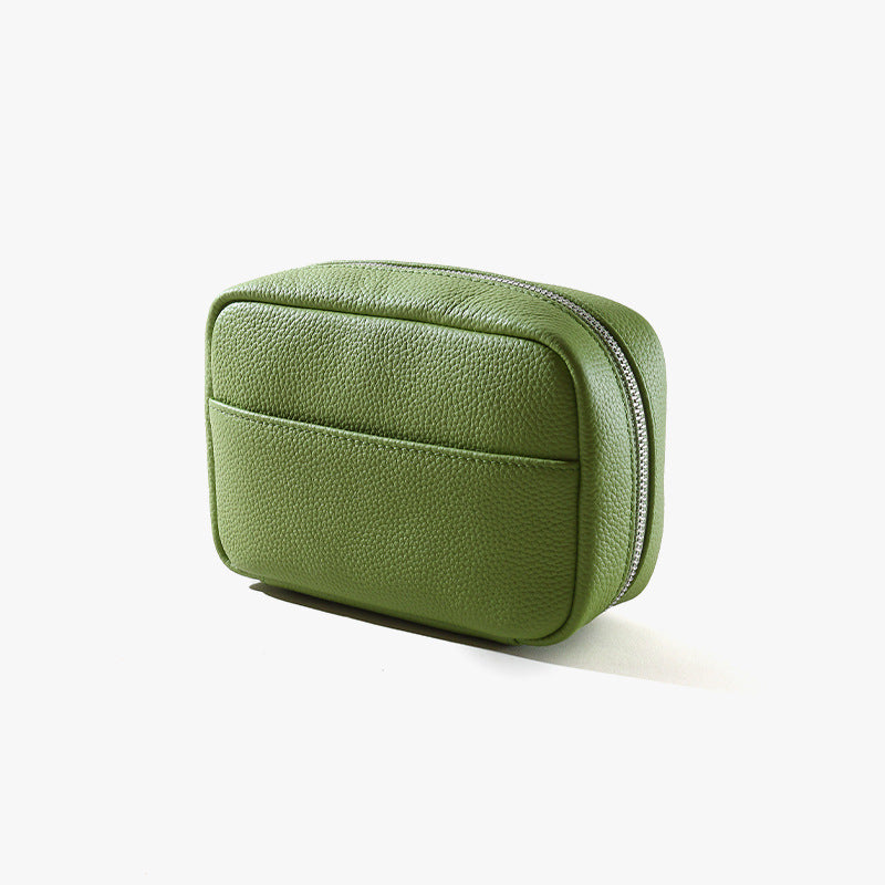 Discover our genuine leather women's makeup bag, featuring a solid color and minimalist design for the modern woman. Enjoy high-end quality with ample storage capacity, making it your ideal travel-friendly cosmetic organizer for daily commuting and beyond. Elevate your accessory game and stay organized in style!