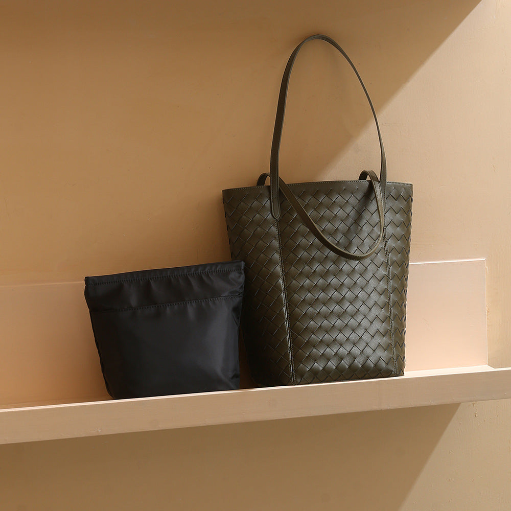 Genuine Leather Women's Tote Bag Cowhide Shoulder Bag for Everyday Commuting Large Capacity Woven Mother and Child Bag Blend of Fashion and Functionality