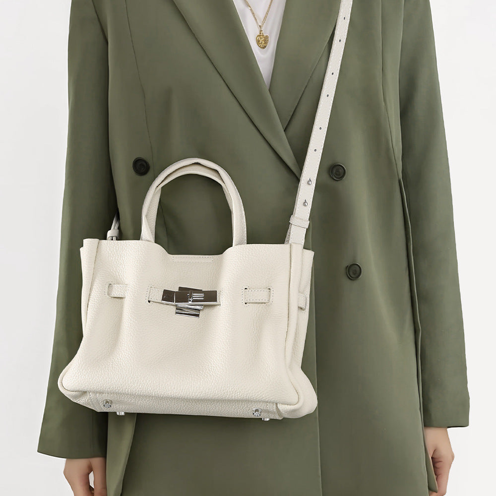 Genuine Leather Women's Tote Bag Top Grade Cowhide Business Commuter Handbag with Versatile Crossbody Mini Purse for Urban Minimalist Style