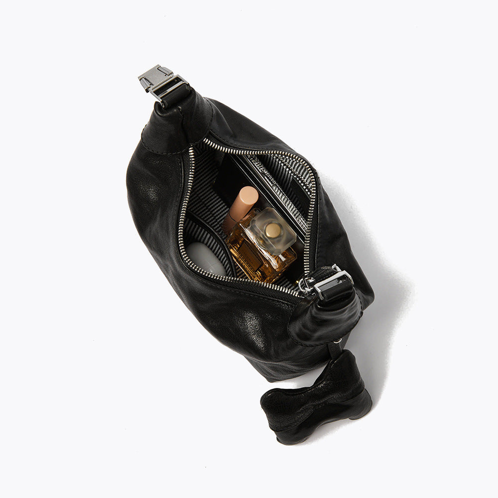 Discover the blend of elegance and functionality with our Korean-inspired dumpling shoulder bag. Crafted from top layer crystal vegetable tanned leather, this vintage handbag features a chic design ideal for any occasion. Versatile enough for a crossbody or a classy shoulder bag, it's the must-have accessory to elevate your outfit.