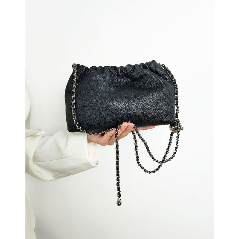 Discover our underarm bag made from top-grain leather, featuring a spacious design and sturdy round chain for durability. This chic Korean-inspired cloud bag is for elevating your everyday outfits while offering practical storage solutions. Shop now to embrace both fashion and functionality!