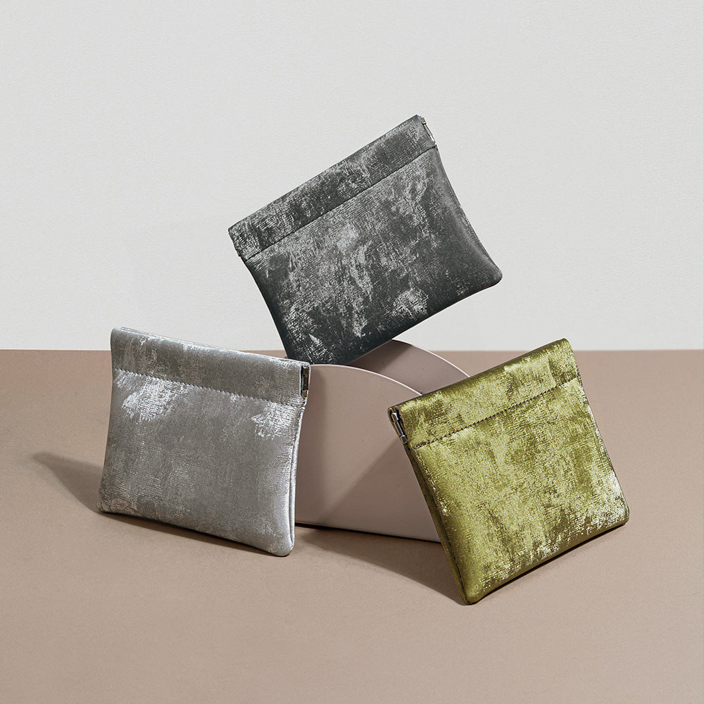 Luxurious Satin Leather Coin Purse with High Quality Snap Closure Elegant Card Holder for Lipstick Earphones Genuine Leather Accessory