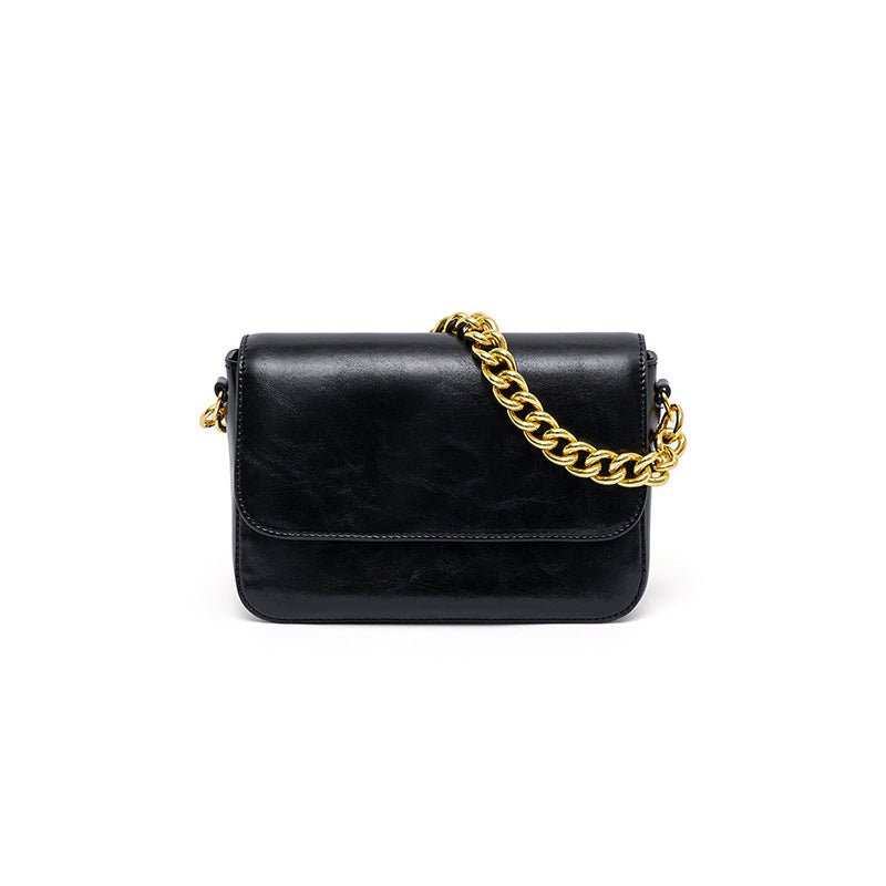 Small Chain Link Top Handle Tote Bag Versatile Shoulder Crossbody Bag Made of Genuine Waxed Cowhide Leather for Women