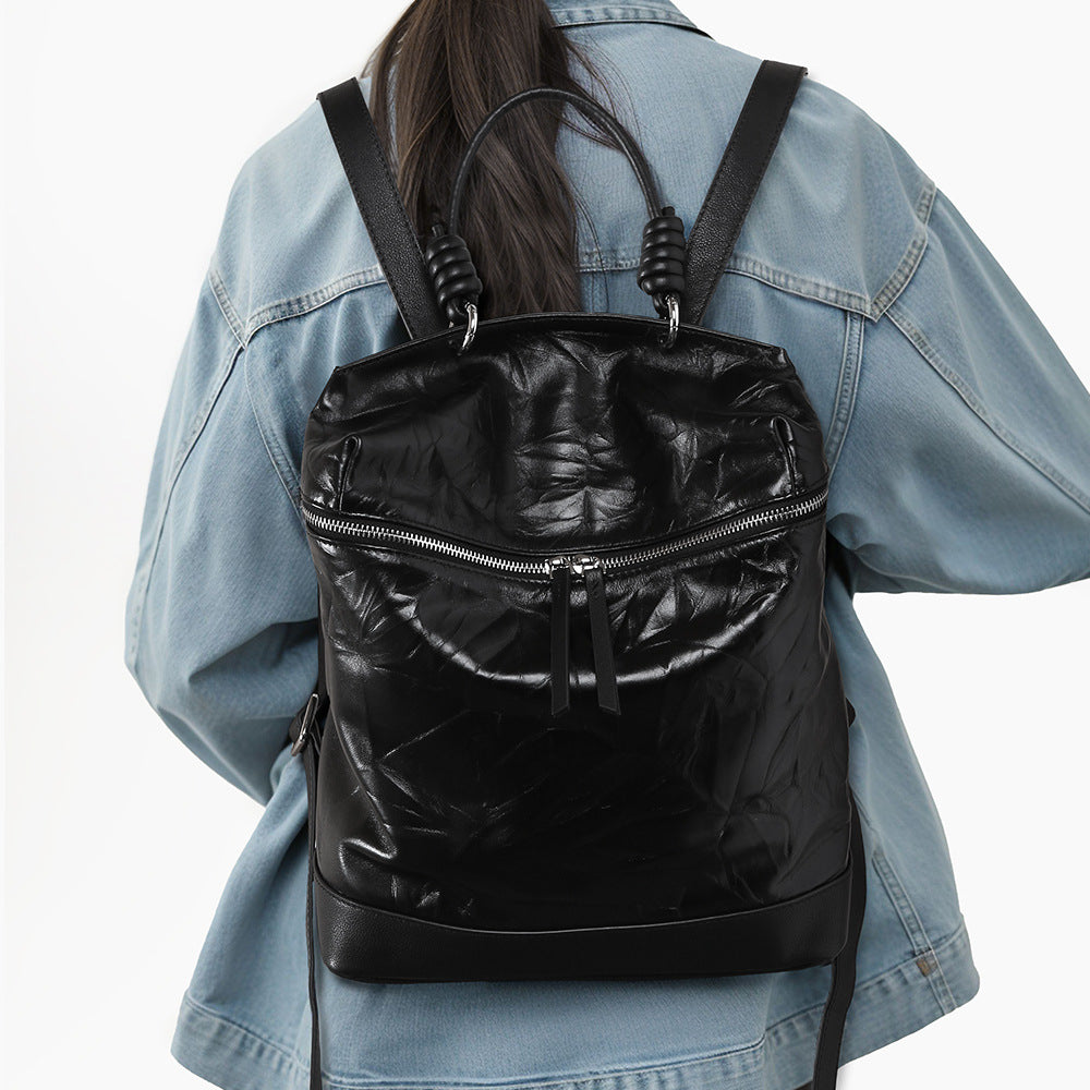 Discover our top grain leather backpack featuring a hand-woven texture, designed for everyday use. This spacious and bag offers extra large capacity for your daily essentials, making it the blend of fashion and functionality. Ideal for school, work, or casual outings, this versatile shoulder bag also doubles as a chic handheld purse for modern lifestyles.